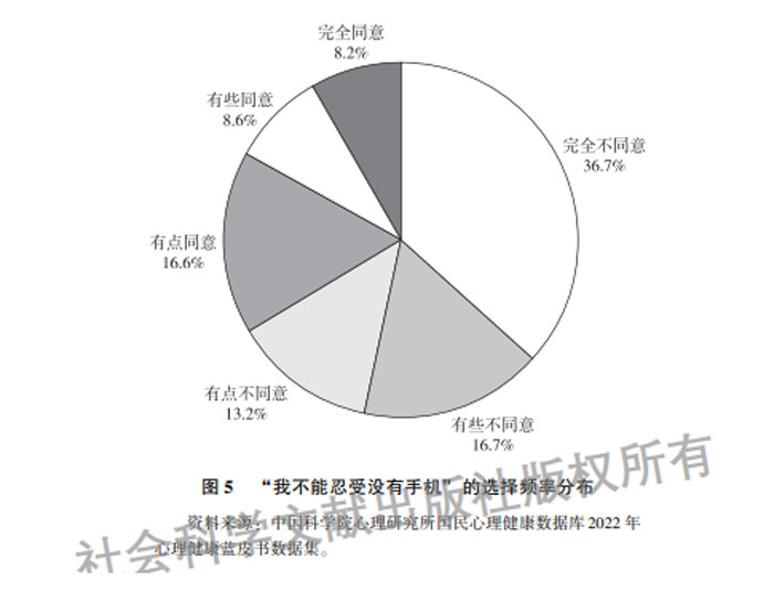 当今社会,手机已成为必需品,互联网的普及也使手机成为青少年获取信息、社交、学习、娱乐的重要工具,对手机过度依赖或手机成瘾会对青少年的成长与发展带来许多负面影响。在该报告中,33.4%的青少年不同程度地对“我不能忍受没有手机”表示同意,这表明这部分青少年可能已对手机产生心理依赖。同时,青少年会花更长的时间在手机上,有超过1/3的青少年可能因使用手机而影响了现实中的学习和任务。