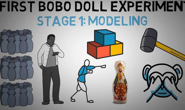 20世纪60年代,美国心理学家阿尔伯特・班杜拉做过著名的波波玩偶(一种与真人体形接近的充气玩具)实验,以研究儿童如何习得攻击性。