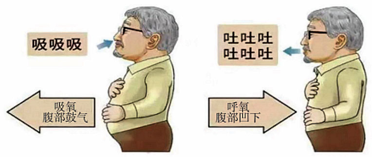 第三步:吸气时最大限度地向外扩张腹部,胸部保持不动呼气时,最大限度地向内收缩腹部,胸部保持不动。