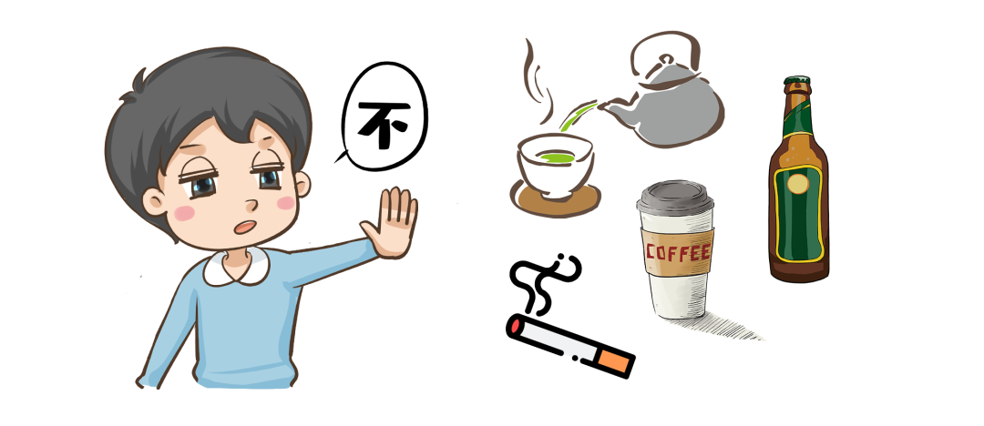 午餐后避免饮用含咖啡因、茶碱的饮料;